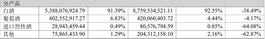 从产品结构来看,白酒依旧是华致酒行的核心支柱,营收占比超九成。2025年,其白酒业务营收约53亿元,同比大幅下滑近四成;葡萄酒、进口烈酒等其他品类同样遭遇冲击,全线呈现不同程度的业绩回落。