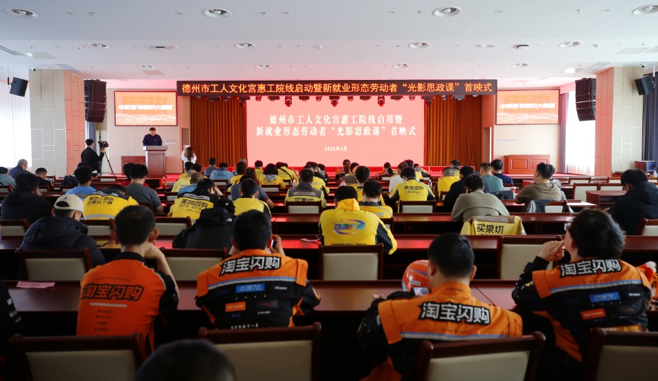 4月14日,山东省德州市工人文化宫惠工院线启用暨新就业形态劳动者“光影思政课”首映式顺利举办,100余名快递员、网约配送员、网约车司机、电商从业者等新就业形态劳动者参加。活动结合全民阅读周,共读《习近平与一线职工朋友们》、共赏主旋律影片,以“阅读+观影”形式开展思政教育,传递工会“娘家人”温暖。